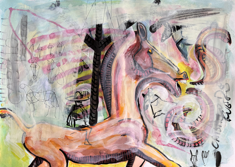 Cheval – technique mixte sur papier – 65 x 50 cm – 2020